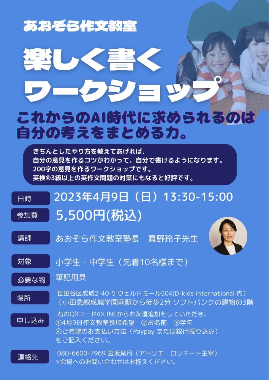 ◆講師 あおぞら作文教室塾長 眞野玲子