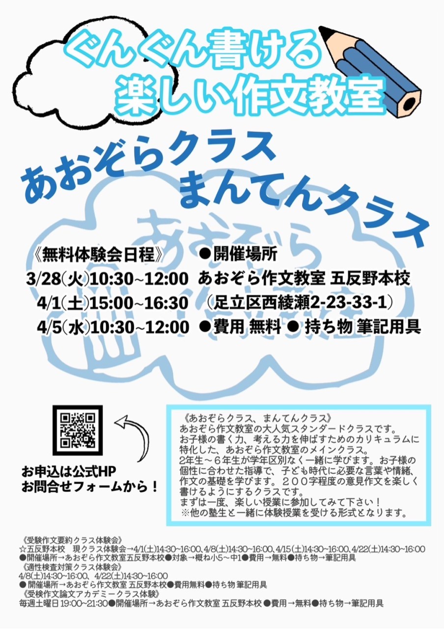 あおぞらクラス、思考力クラスは、通常授業で作文発表会を各クラスで行なっているため、別の日程で体験会を行いますね。