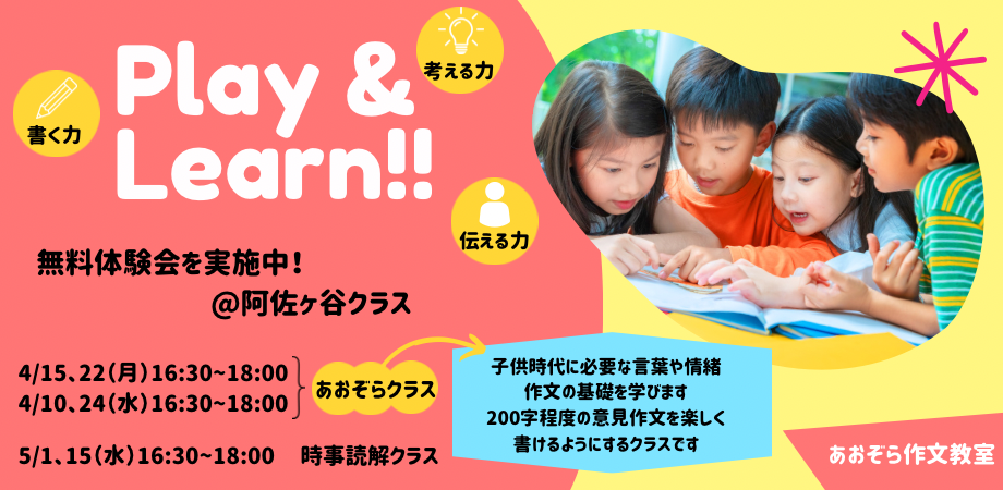 まずは一度、あおぞら作文教室の楽しい授業に参加してみてください🎵
