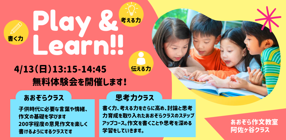 楽しく💗お子さまの作文力を伸ばしたい、表現力を高めたい、または自己表現の方法を学ばせたい!読解力を身につけたい!受験に備えたい!