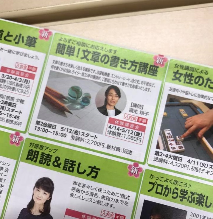 なかなか集まらないんですね、大人の講座。セブンカルチャー武蔵境も、セブンカルチャー綾瀬も、大人のための作文教室は集客ゼロでした。泣。