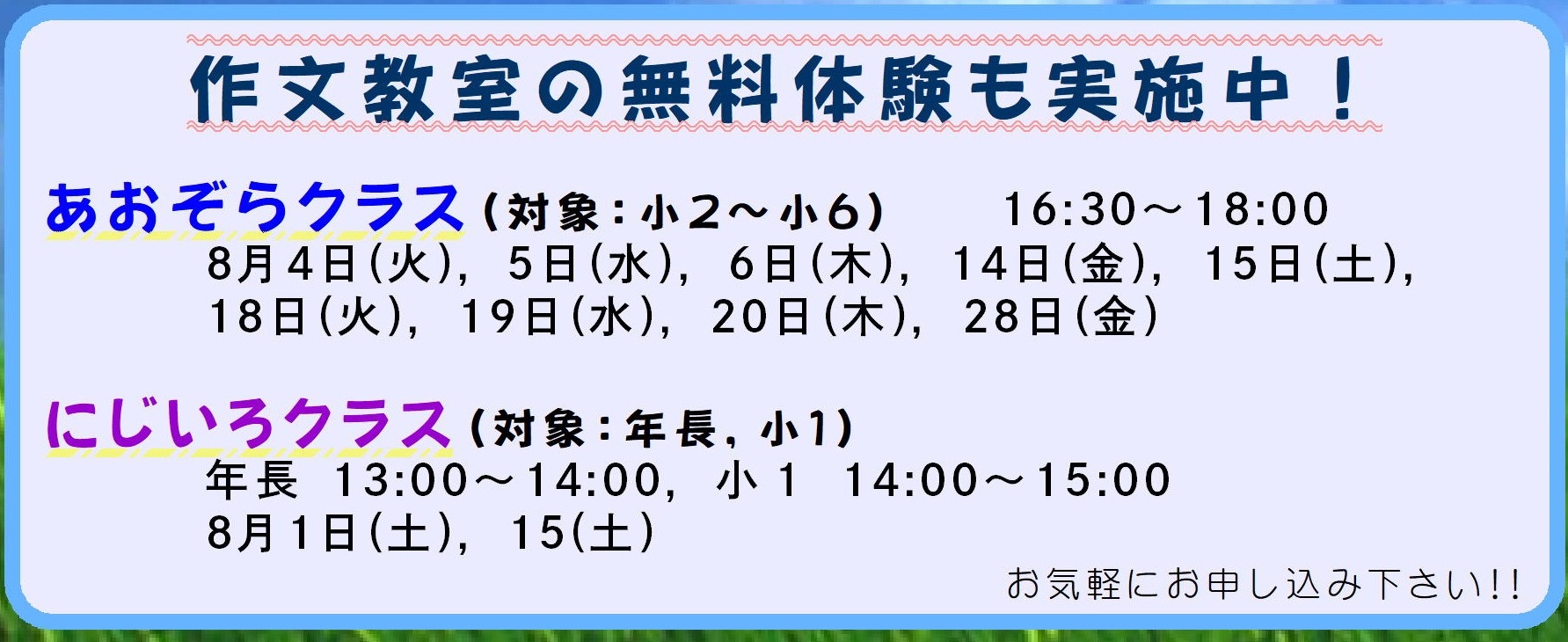 あおぞらクラス無料体験!(8/6)