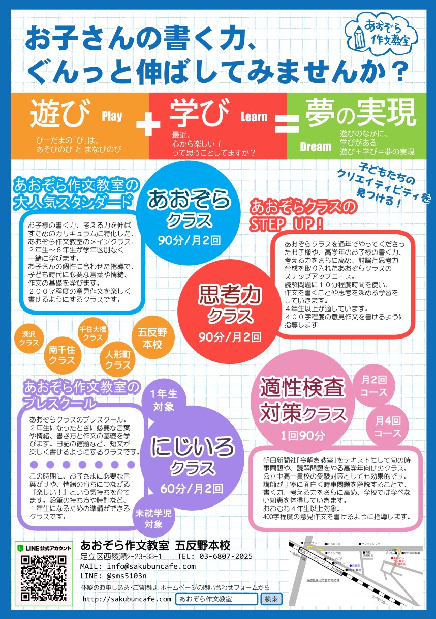 朝日新聞社から出ているテキスト旬頃教室を使用し、弊社独自の視点と、討論や新しいトピックのを盛り込みつつ読解問題を解き、約400字の作文を適性検査で出される作文を書く力を身に付けます。中学受験をする方だけでなく、時事問題に興味があったり(無くても興味持ちます^_^)時事問題を探究したいお子様は参加できます。概ね4年生以上。
