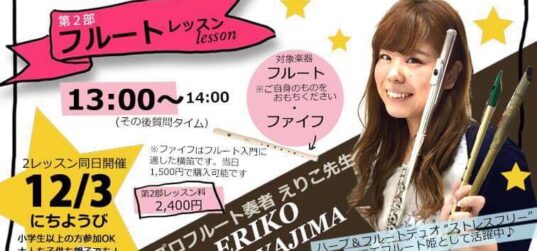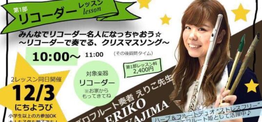 アーティストが教えるリコーダーレッスン!こんなチャンスはなかなかありません^ ^クリスマス向け特別音楽レッスンをお楽しみ下さい♪ プロフルート奏者、”ストレスフリー”にてフルート姫として活躍中のキュー... 続きを読む