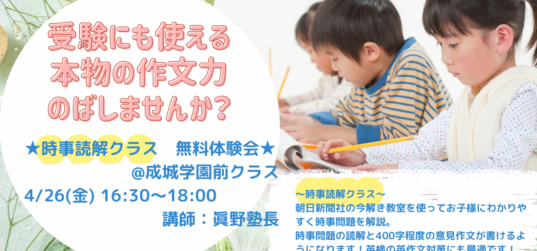 🌸4月26日(金) 成城学園前 時事読解クラス 無料体験会のお知らせ🌸