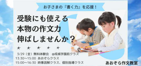 プロが教える!受験作文 個別指導の「あおぞら作文教室」| 五反野・阿佐ヶ谷・早稲田・北千住・成城学園前